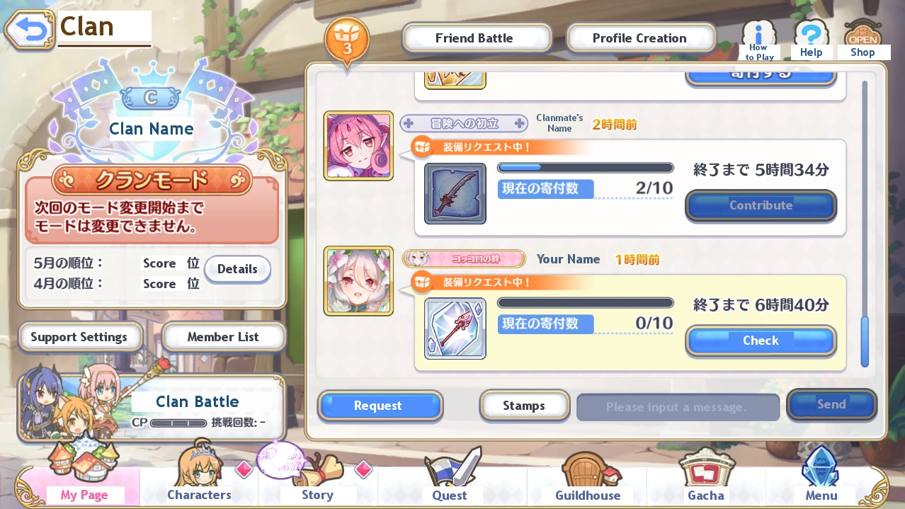 - Here you can friend other players, set Support Characters and participate in Friend Battles.