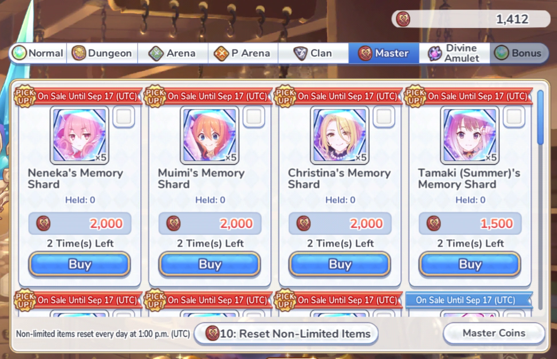 Master Shop is a Shop in Princess Connect! Re:Dive where players can spend Master Coins earned from Quests after reaching the current player level cap to purchase Memory Shards and Equipment.